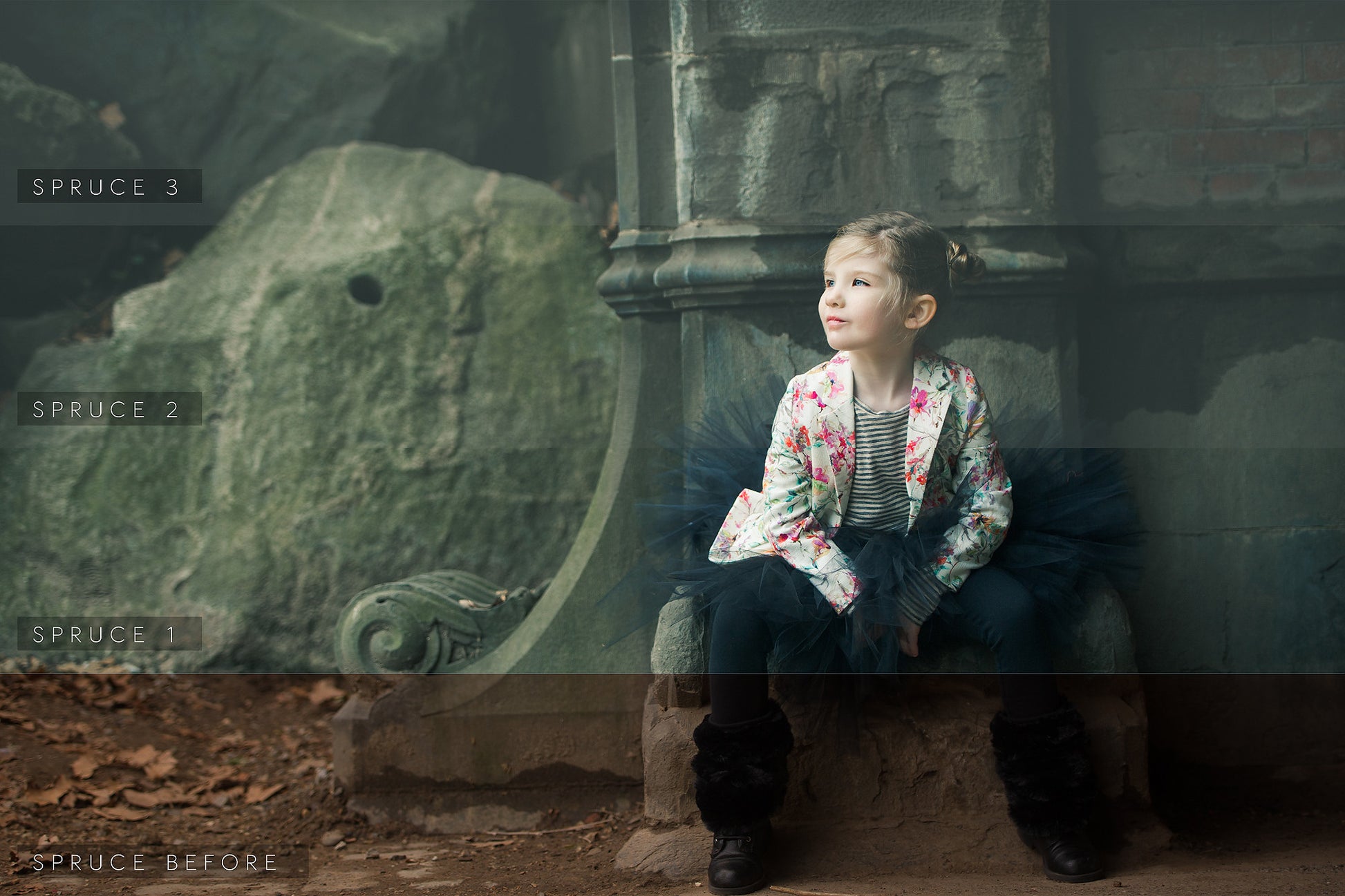 Spruce - Lift you image with an old school film look that lightly plays with your yellows and green. Another great preset to use if you're shooting in the woods. This one is a little slice of glittery heaven. Warms and shines.
