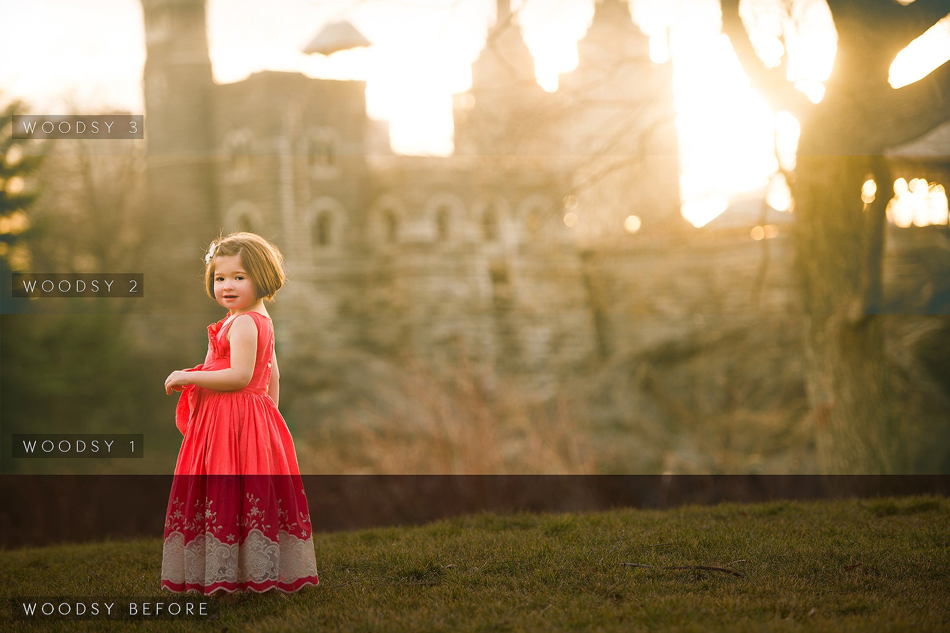 Woodsy - Adds fill light and film qualities through basic adjustments.  Great for images shot in flat light.